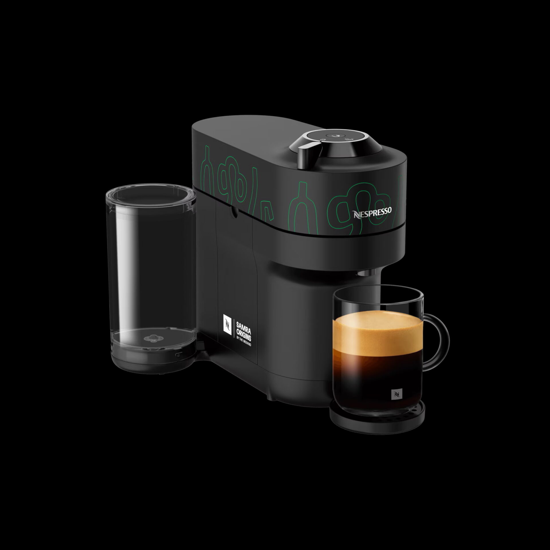 Esta colección presenta nuevos productos que mejorarán la experiencia del café en mercados seleccionados. Combinando la experiencia cafetera de Nespresso con la visión artística única de The Weeknd, juntos han creado el nuevo café Edición Limitada Samra Origins Tanzania, elaborado con granos 100% Arábica provenientes de las Tierras Altas del Norte de Tanzania. La colección también incluye una máquina Vertuo Pop+ Samra Origins,con el logotipo de la colaboración, así como una selección de accesorios que celebran la magia cotidiana que aporta el café.